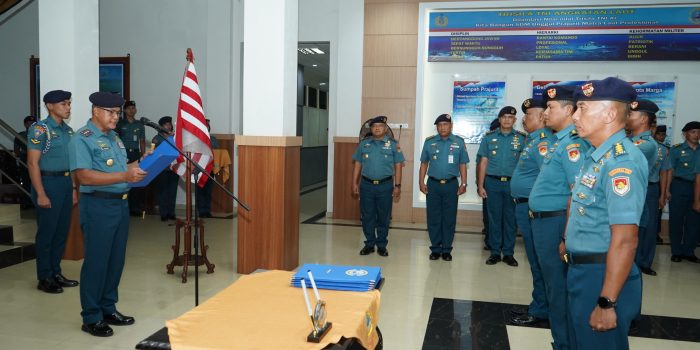 SORONG – Komandan Komando Daerah TNI Angkatan Laut XIV (Kodaeral XIV) Sorong, Laksamana Muda TNI Djatmoko, S.T., M.M., CHRMP., memimpin upacara pengukuhan