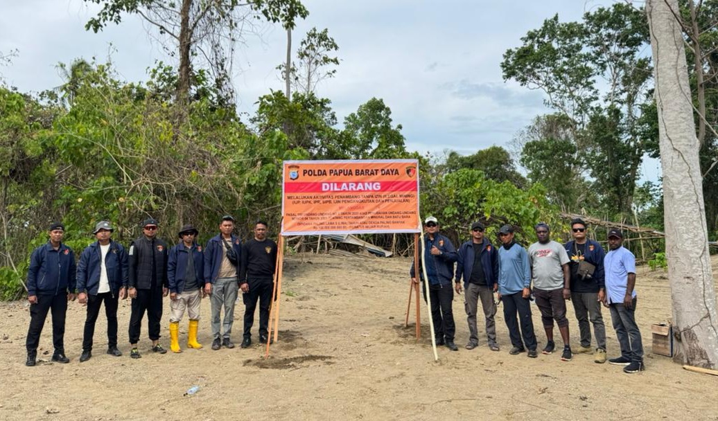 SORONG– Polda Papua Barat Daya melalui Personel Ditreskrimsus melakukan kegiatan penertiban dan himbauan secara lisan serta pemasangan spanduk di lokasi Pertambangan emas tanpa ijin (PETI), berada di lokasi Jampung Orwen Distrik Kwoor, Kabupaten Tambrau Provinsi Papua Barat Daya lebih tepatnya di belakang Gereja GKI Imanuel dan belakang