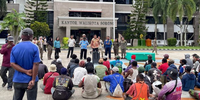 SORONG– Puluhan petugas kebersihan, Kamis (15/1/2026) mendatangi Kantor Wali Kota Sorong guna menyampaikan aspirasi atas persoalan yang dihadapi selama ini.