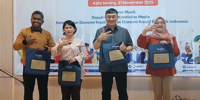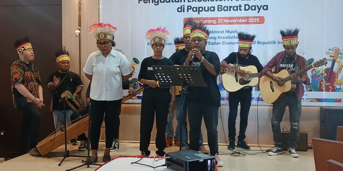 SORONG– Dengan kembali menghadirkan narasumber, Hendra Renno Lokollo, Workshop “Penguatan Ekosistem Subsektor Musik di Papua Barat Daya yang digelar anggota Komisi VII DPR RI Dapil Papua Barat Daya, Dr Rico Sia, M.Si bekerjasama dengan Direktorat Musik Deputi Bidang Kreativitas Media Kementerian Ekonomi Kreatif/Badan Ekonomi Kreatif RI di Layar Gading Restaurant Kota Sorong, Kamis (26/11/2025) diikuti dengan penuh antusias oleh para peserta.