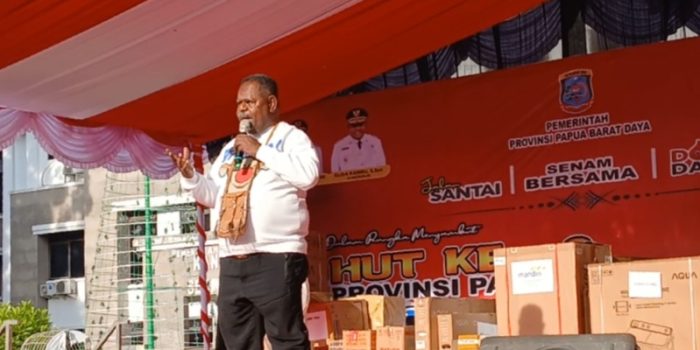 “Libatkan masyarakat dan orang-orang yang berperan dalam.hadirnya Provinsi Papua Barat Daya ini. Doorprize itu kita tunda dan besok itu semua masyarakat ada di sini, bersama-sama merayakan HUT Provinsi Papua Barat Daya ke-3,” ujar Gubernur Elisa Kambu.