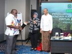 Pose bersama Wali Kota Sorong, Septinus Lobat, SH, M.PA dan Sekretaris Dekranasda Provinsi Papua Barat Daya, Hj Darmawati Syam, S.Ag MM. (rosmini/SS)