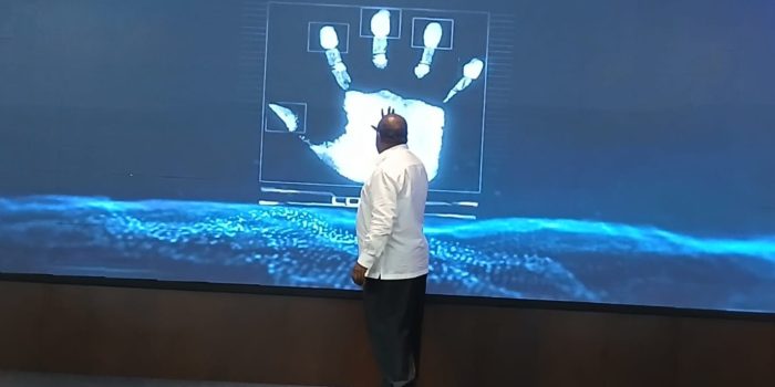 Launching buku “Jejak Jalan Album Perjalanan Johny Kamuru” dilakukan oleh Bupati Sorong Dr Johny Kamuru, SH, M.Si secara digital dengan menekan telapak tangan  yang ditampilkan pada layar slide dan disaksikan oleh para pejabat, hamba-hamba Tuhan dan tamu undangan lainnya.