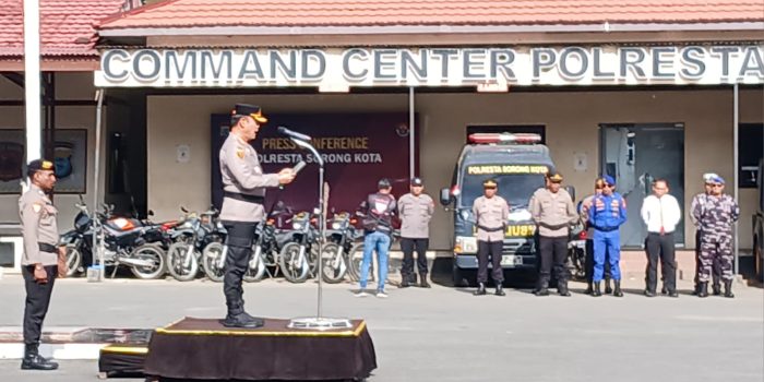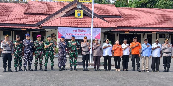 SORONG– Digelar secara serentak di seluruh wilayah jajaran Kepolisian RI, Kapolresta Sorong Kota Kombes Pol Amry Siahaan, S.IK, MH memimpin Apel Kesiapan Tanggap Darurat Bencana di Mapolresta Sorong Kota, Rabu (5/11/2025).