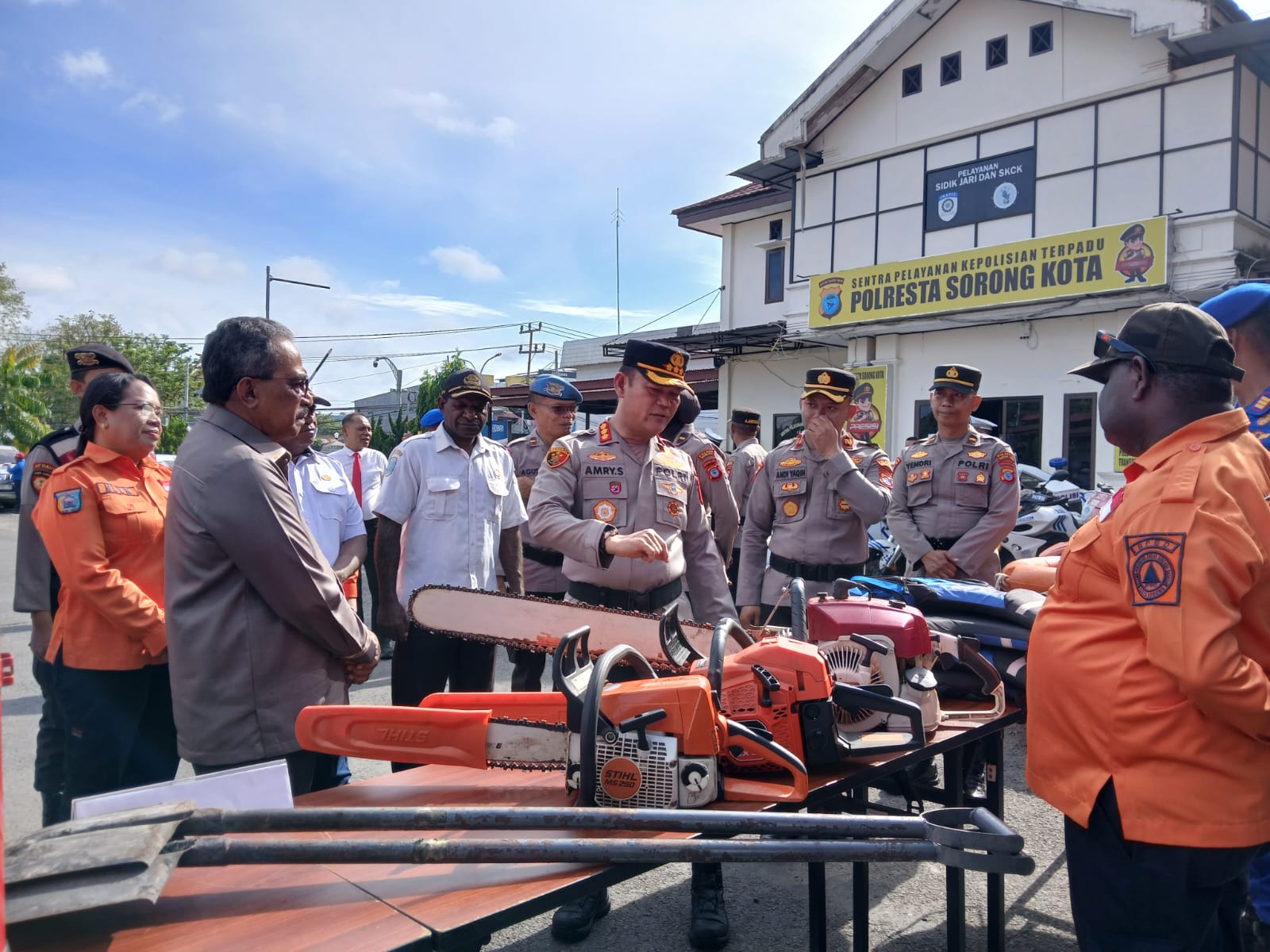 Saat meninjau sarpras, Kombes Pol Amry Siahaan menanyakan titik-titik bencana alam di Kota Sorong yang dijawab oleh Kepala BPBD Kota Sorong Herli Sasabone, bahwa seperti longsor biasa terjadi di Kelurahan Malaimsimsa dan Sorong Utara.