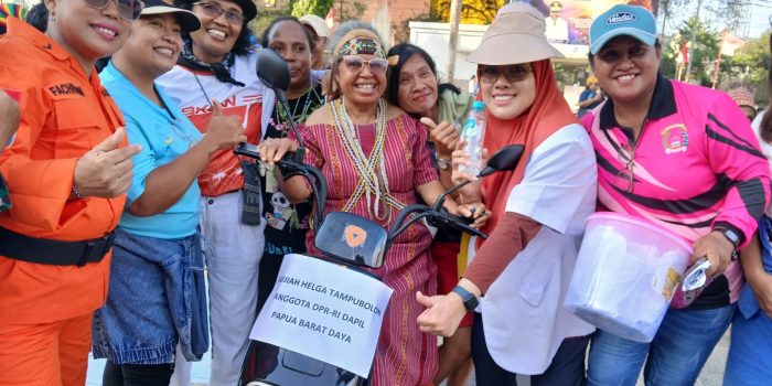 SORONG– Wajah mama Enderika Tahoba (49) begitu berbinar-binar, Ia tidak menyangka jika dirinya ikut kegiatan Karnaval Perempuan 1000 Profesi pada hari ini (Sabtu,18/4/2026) mendapat hadiah utama berupa motor listrik.