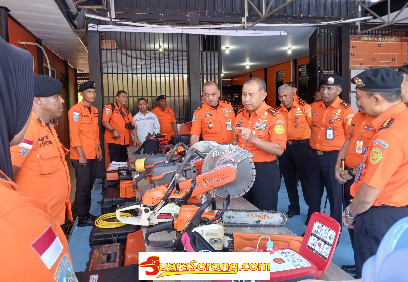 Sebelum memberikan arahan kepada seluruh staf di Kantor SAR Sorong, Kepala BASARNAS didampingi Kepala Kantor SAR Sorong Monce Brury meninjau perlengkapan sarana dan prasarana (sarpras) yang dimiliki Kantor SAR Sorong.