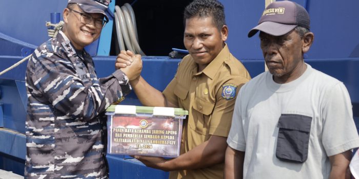 SORONG – Mengimplementasikan program Kampung Bahari Nusantara, sebagai wujud nyata komitmen TNI AL dalam membangun kampung pesisir yang tangguh, produktif, sehat, dan berdaya saing, Komandan Komando Daerah TNI Angkatan Laut XIV (Komandan Kodaeral XIV),9 Laksamana Muda TNI Djatmoko, S.T., M.M., CHRMP, melaksanakan kegiatan panen raya keramba jaring apung dan pemberian sembako kepada masyarakat binaan Kodaeral XIV. bertempat di Kampung Bianci, Distrik Waigeo Barat, Kabupaten Raja Ampat Provinsi Papua Barat Daya, Kamis (29/01/2026).