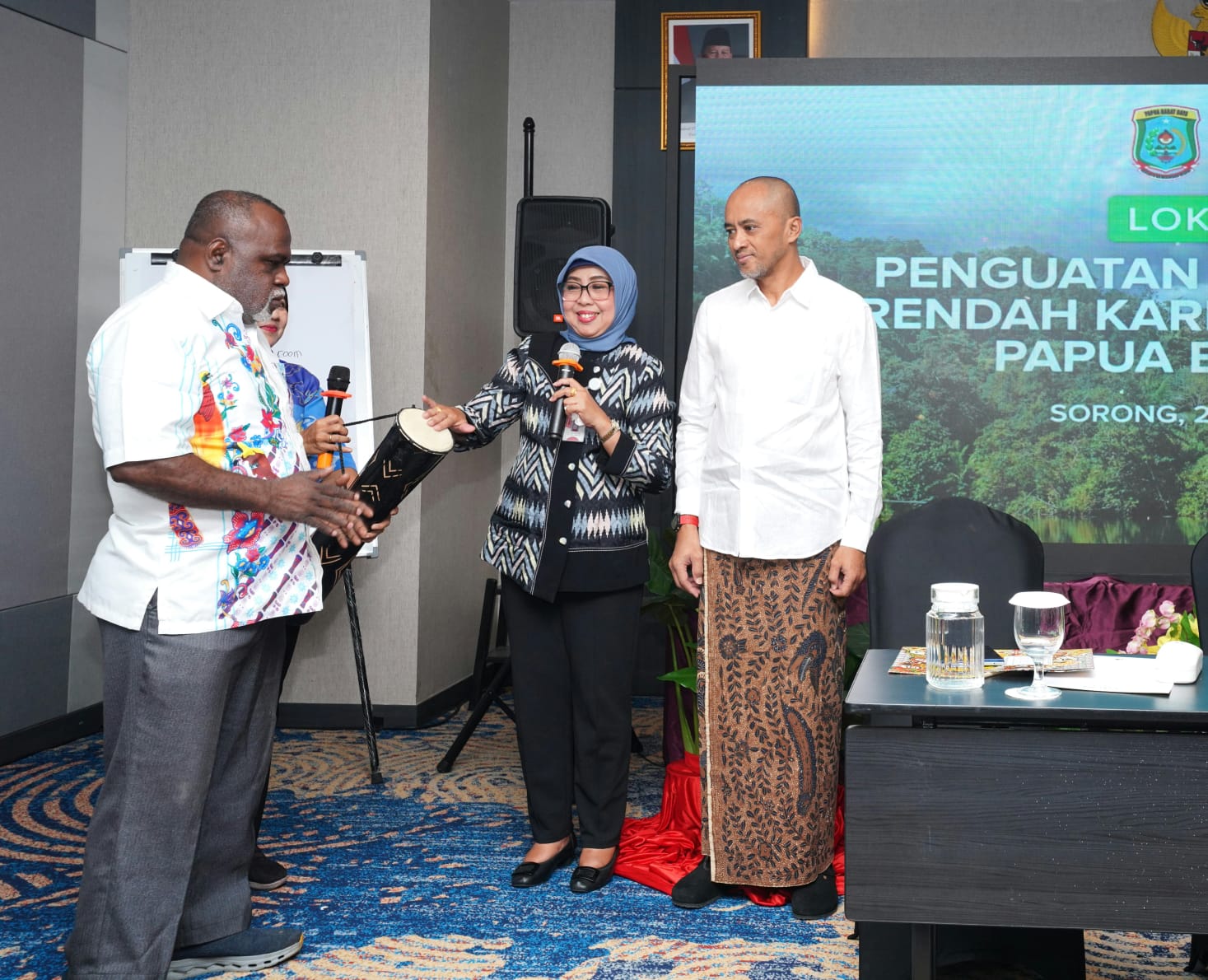 Dalam sambutannya, Kepala Dinas Lingkungan Hidup, Kehutanan, dan Pertanahan Provinsi Papua Barat Daya, Julian Kelly Kambu, ST, M. Si, menekankan pentingnya pendekatan pembangunan rendah karbon sebagai strategi utama dalam menjaga kelestarian lingkungan dan meningkatkan daya saing daerah.