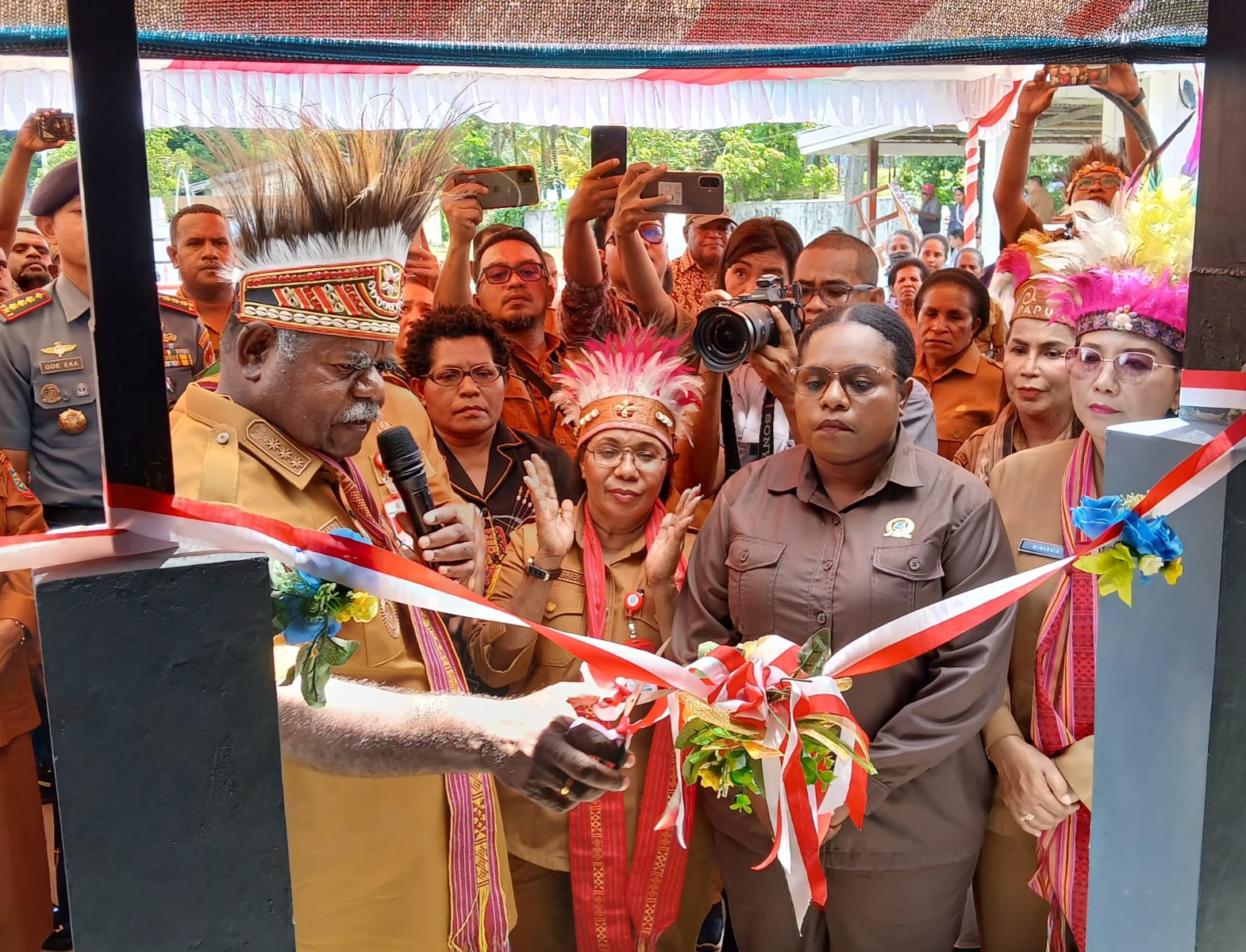 SORONG– Ditandai dengan pengguntingan pita, Gubernur Papua Barat Daya (PBD), Elisa Kambu, S,Sos meresmikan 2 unit Pasar Mama-mama Papua yang secara simbolis dipusatkan di Pasar Jalan Menur belakang Ramayana Mall Sorong, Klademak III Kota Sorong, Selasa (24/2/2026).