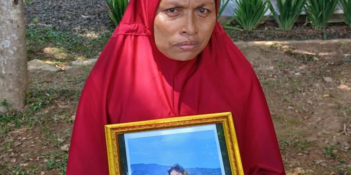 Ama Rayaaan yang mengenakan jilbab merah mengaku korban Keisia adalah calon menantunya.