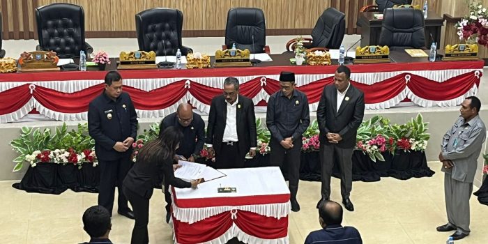 Dalam rapat tersebut, Wali Kota Sorong Septinus Lobat menyerahkan secara resmi dokumen Materi Raperda APBD TA 2026 kepada Pimpinan DPRD Kota Sorong sebagai bentuk pemenuhan tahapan penyusunan dan pembahasan APBD sesuai ketentuan peraturan perundang-undangan.