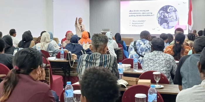 “Untuk menciptakan rasa bahagia wisatawan datang ke Sorong ,yang pertama aman. Kalau tidak aman ya jangan harap kita bahagia. Destinasinya bagus, orangnya ramah, tapi kalau taruh helm hilang, kira-kira bahagia ngga,”tanya Marhen-sapaan akrab Asdep yang langsung disahut peserta “tidak”.
