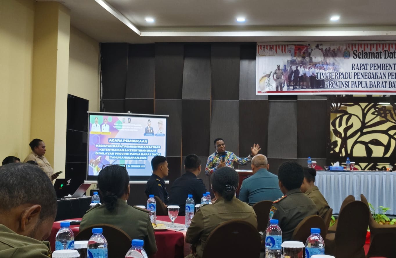 SORONG – Bertempat di Hotel Bellagri Kota Sorong, Kamis (4/11) , Pemerintah Provinsi (Pemprov) Papua Barat Daya (PBD) menggelar Rapat Pembentukan Satuan Tugas (Satgas) Tim Terpadu Penegak Peraturan Daerah (Perda) dan Peraturan Kepala Daerah (Perkada) tahun 2025.